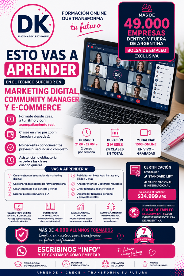 🎓 TECNICATURA SUPERIOR EN MARKETING DIGITAL, COMMUNITY MANAGER Y E-COMMERCE